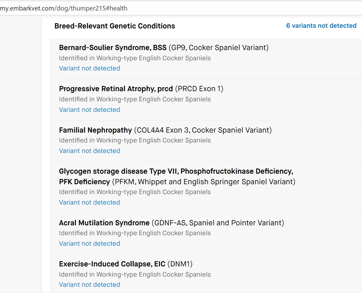 DNA (Embark): CLEAR for BSS, PRA-prcd, PFK, FN, AMS, EIC